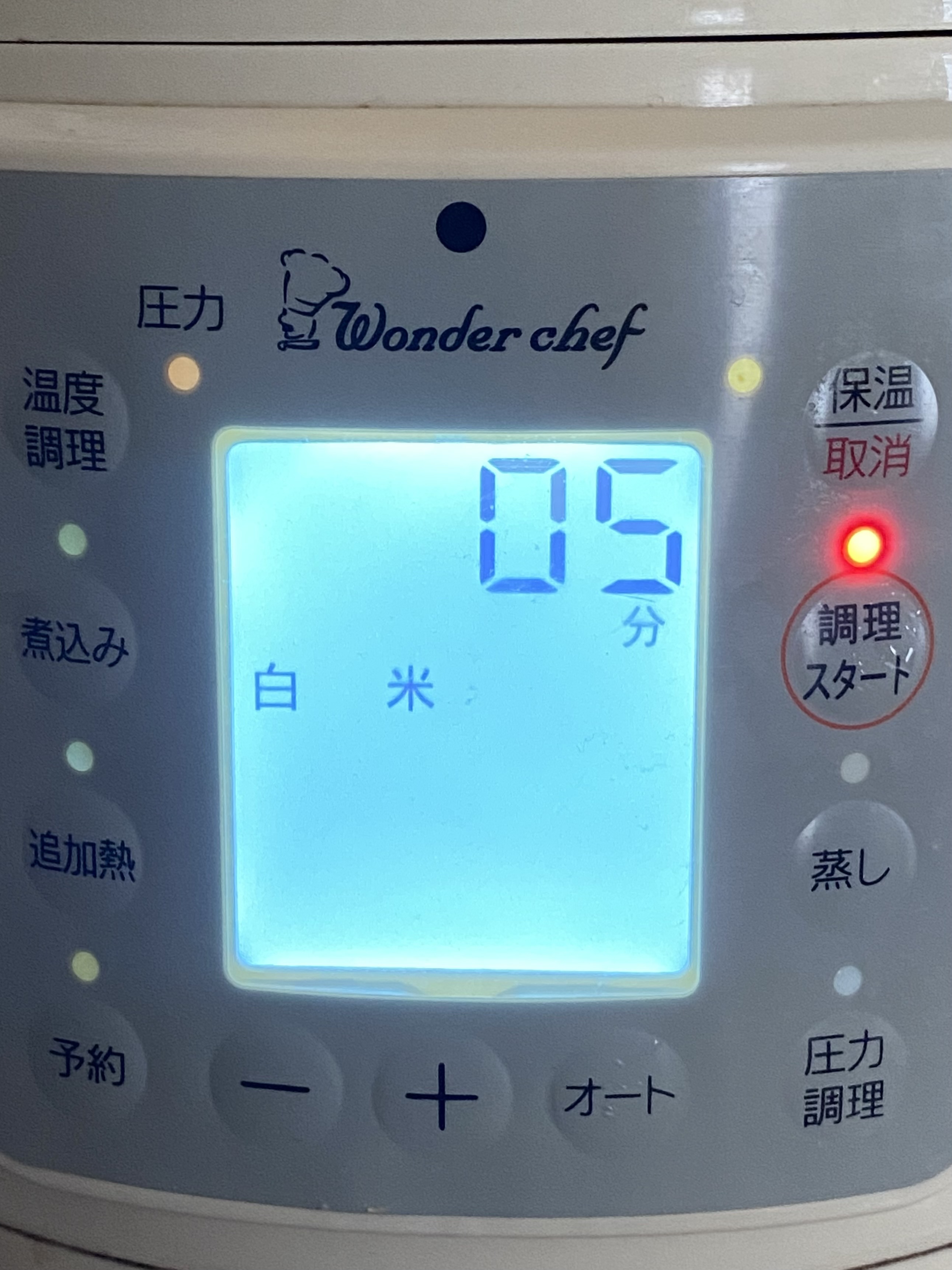 ③最後にとうもろこしの芯を入れオートの白米ににセットする。