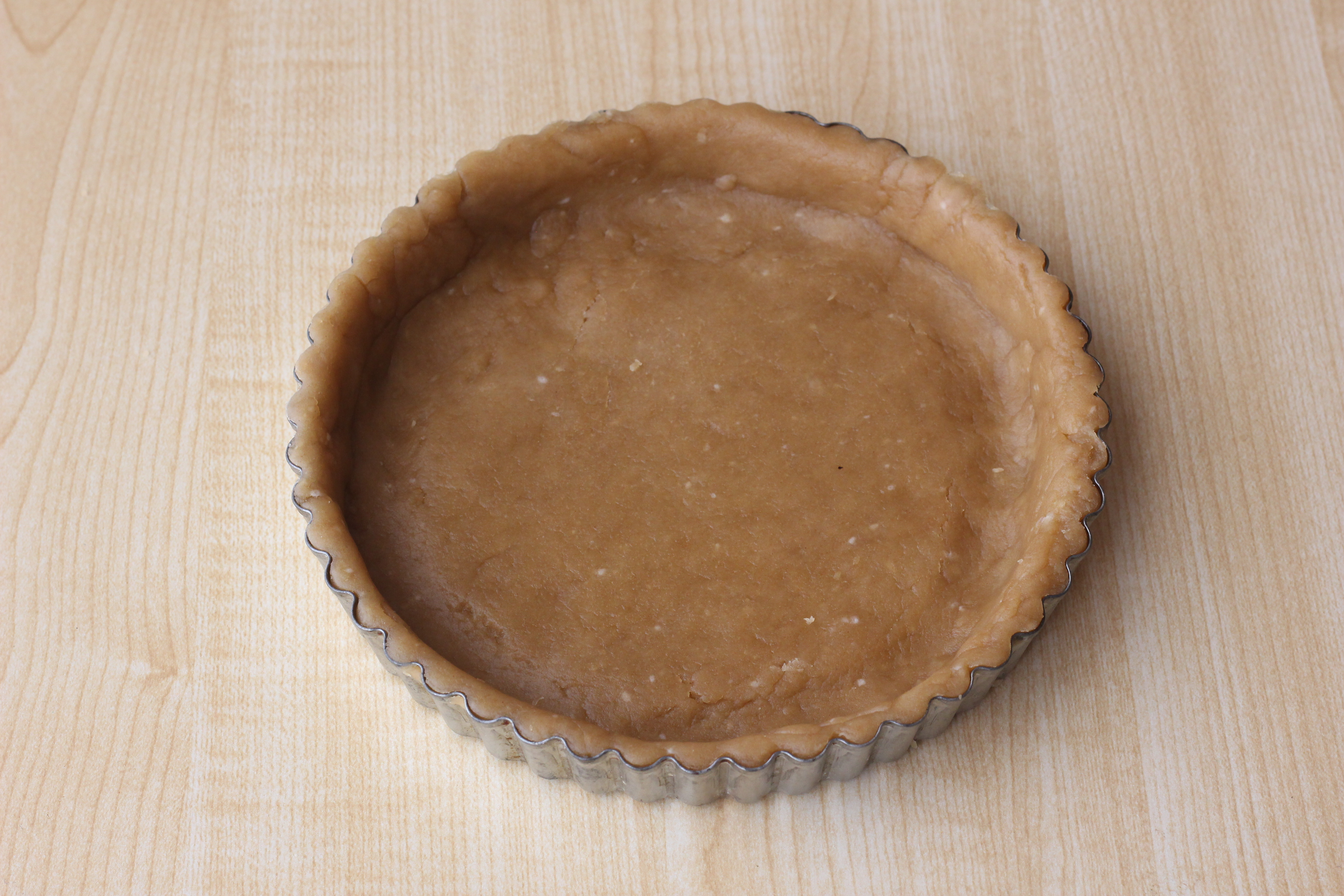 タルト型のふちのふち底を親指でまわし押し、厚さを均等にする。