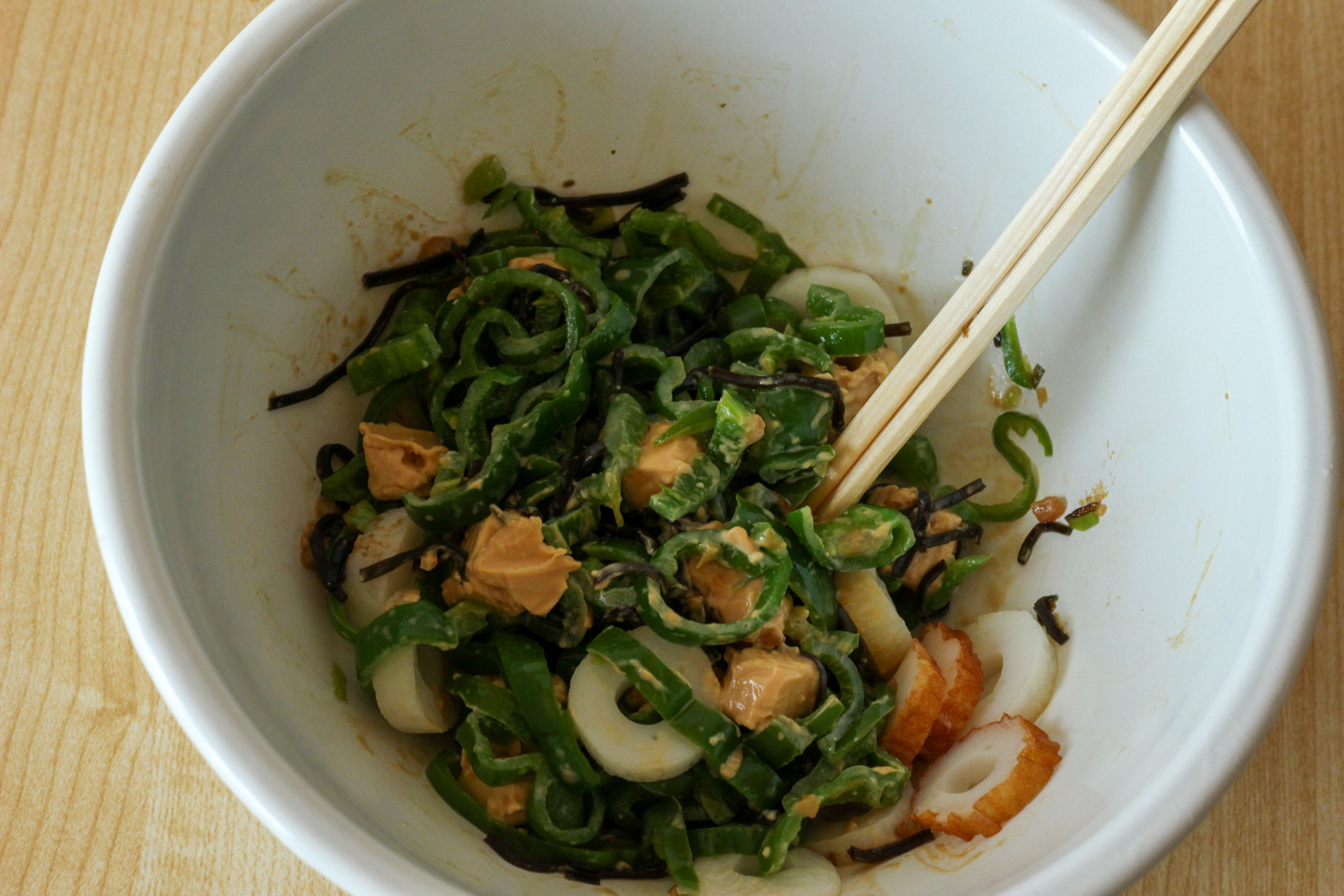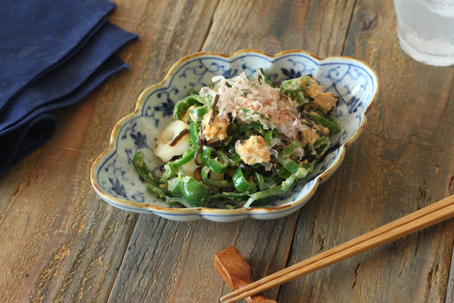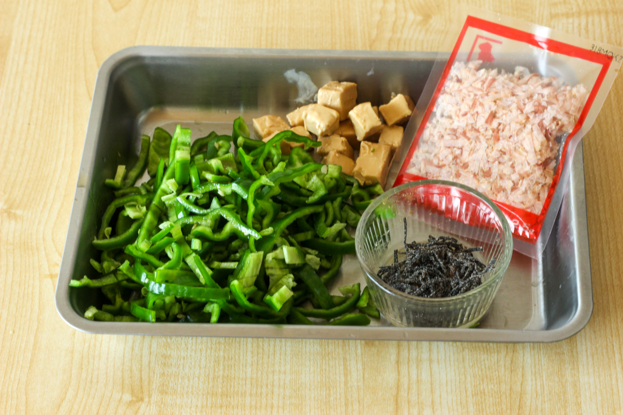 ❶ お湯を沸騰させた鍋に菜の花を入れ30秒程ゆで、氷水にさらす。粗熱が取れたら水気を絞り根元を切り落として2cm幅に切る。