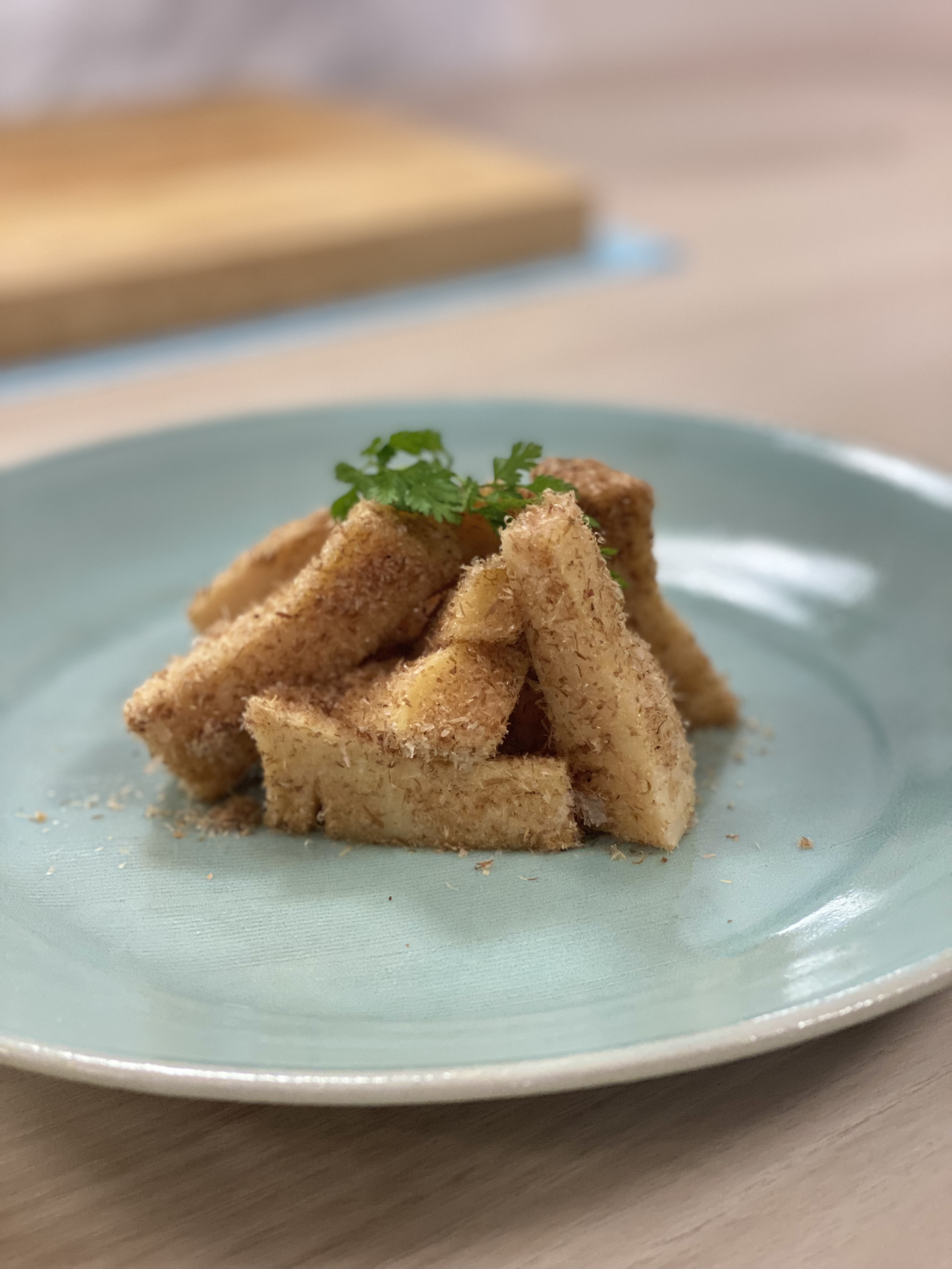 私たちのテーブルのチョイスは、外は、カリッ!中は、ふわ〜の焼き加減を選びました。まるでカフェのようなサクッふわ食感。