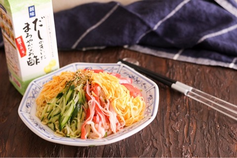 ・卵を溶きフライパンで薄焼きたまごを作り、3mm幅千切りをする。