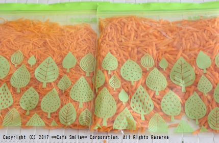 ・きゅうりを3mm幅の薄切りに斜め切りにし、千切りをする。