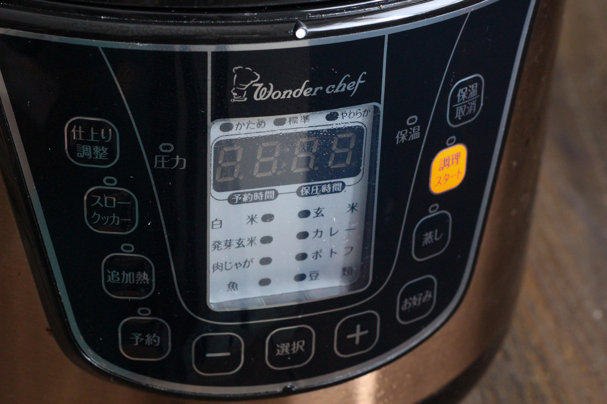 ❹ 電気圧力鍋で2分加圧調理し、粗熱が取れるまで放置する。
