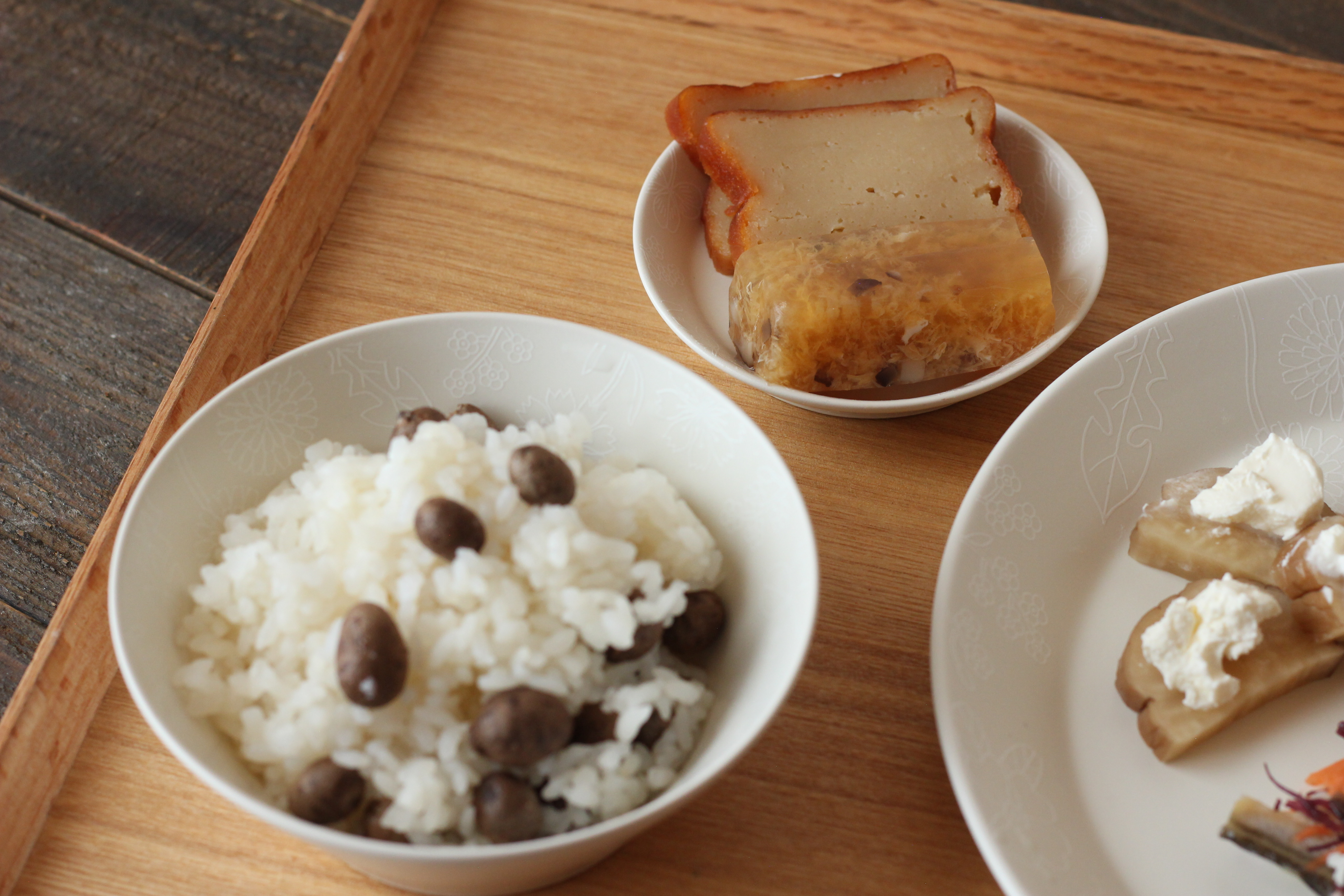 写真は、そんな秋田の食材と購入した惣菜で作った秋田ごはん。