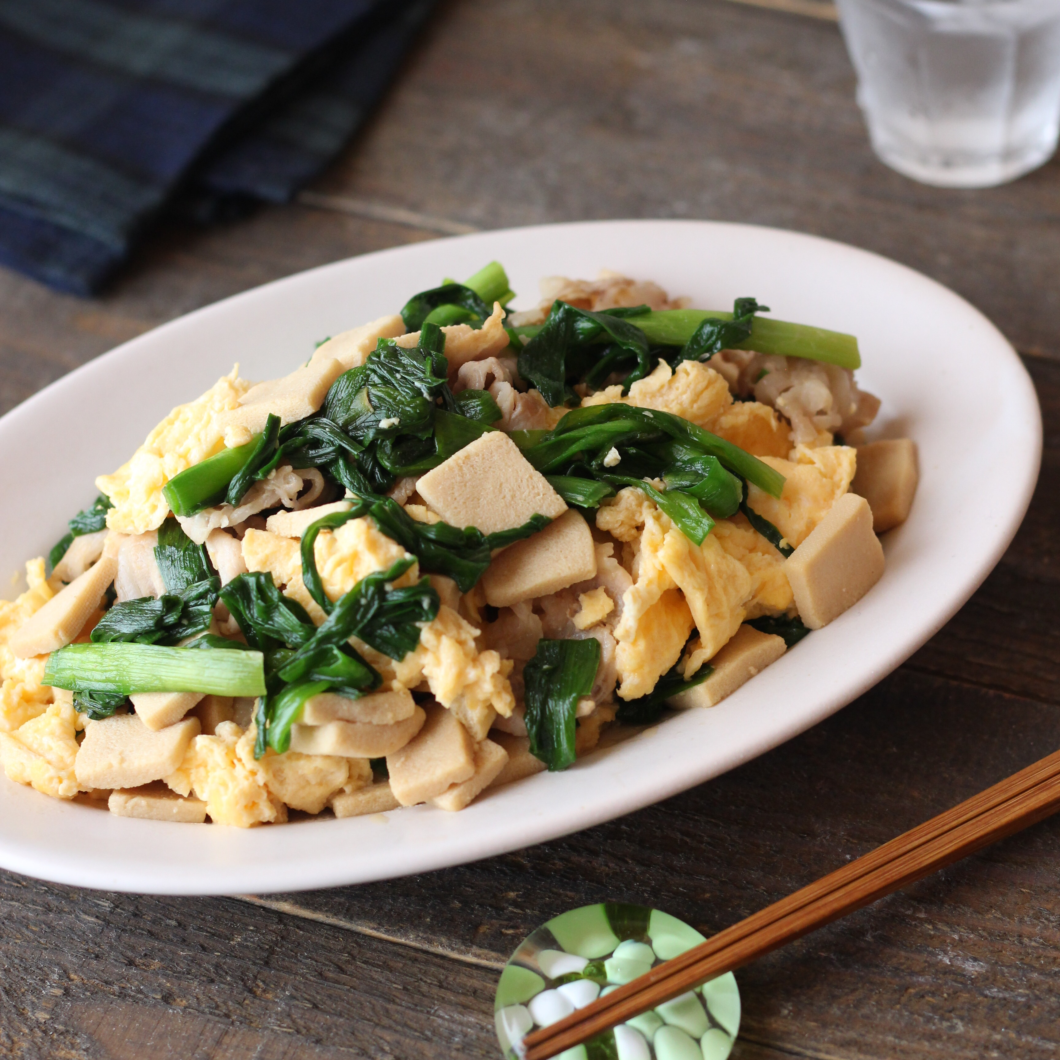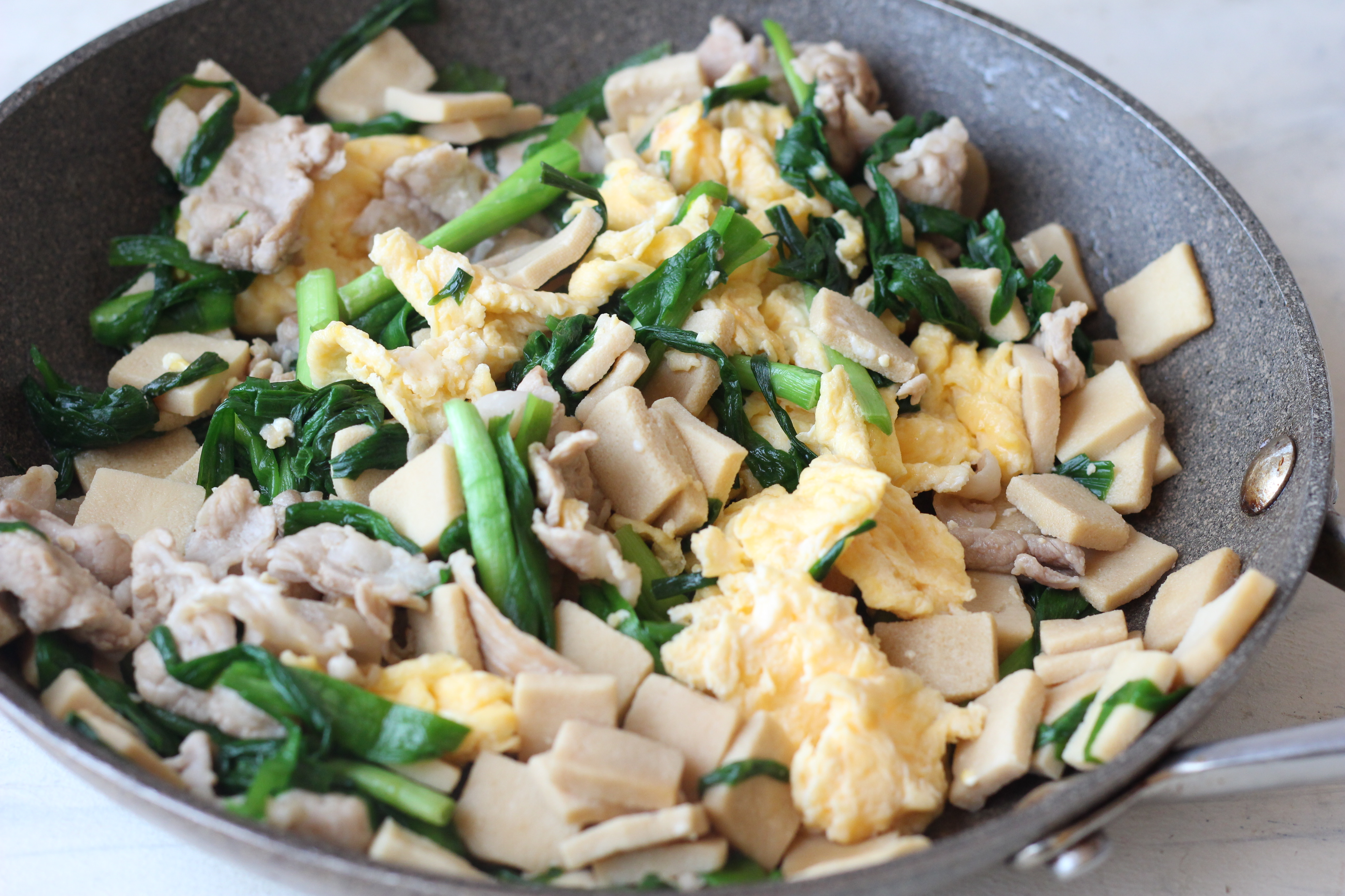 【レシピ】高野豆腐と豚肉のニラ玉炒め
