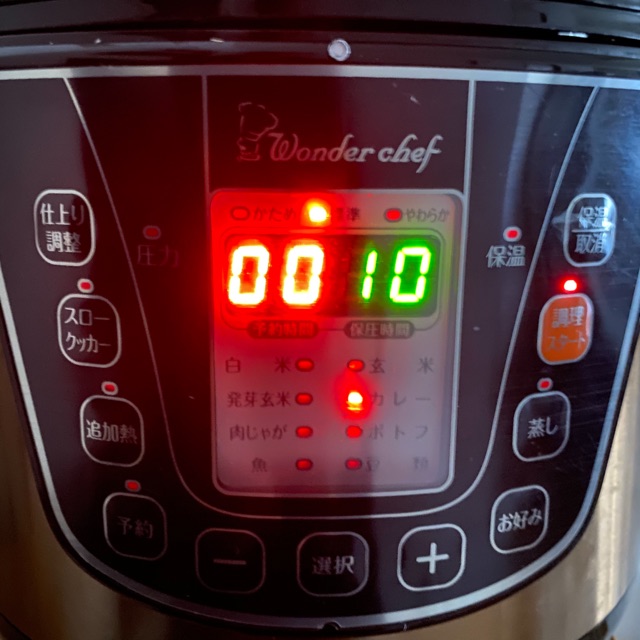 ④保温になりピンが下がったら芯を取り除きすぐに混ぜ出来上がり。