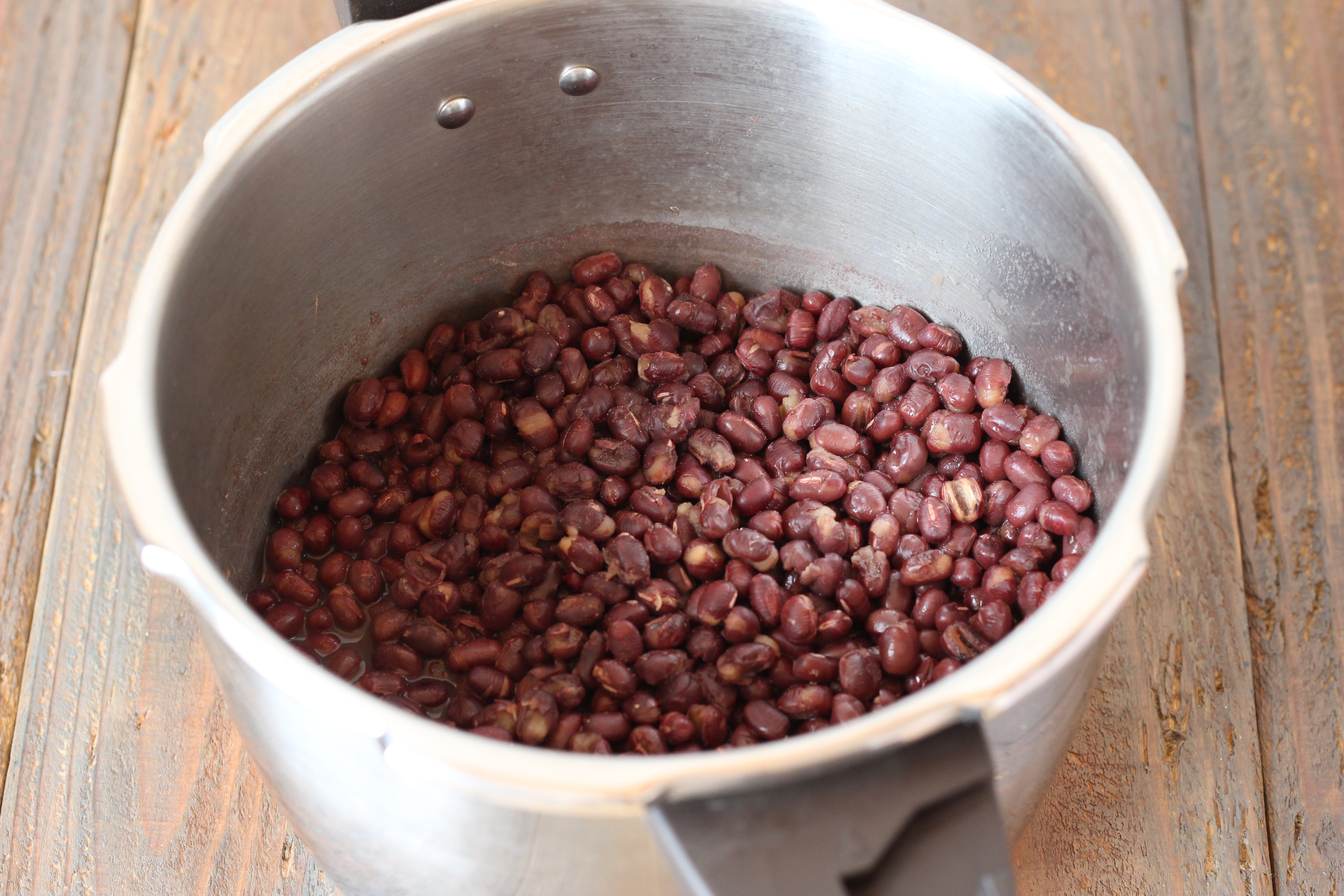 ②米を研ぎ、釜に米と水を2合線より気持ち少なめに水を入れ、塩麴・酒をとうもろこしの粒を入れる。
